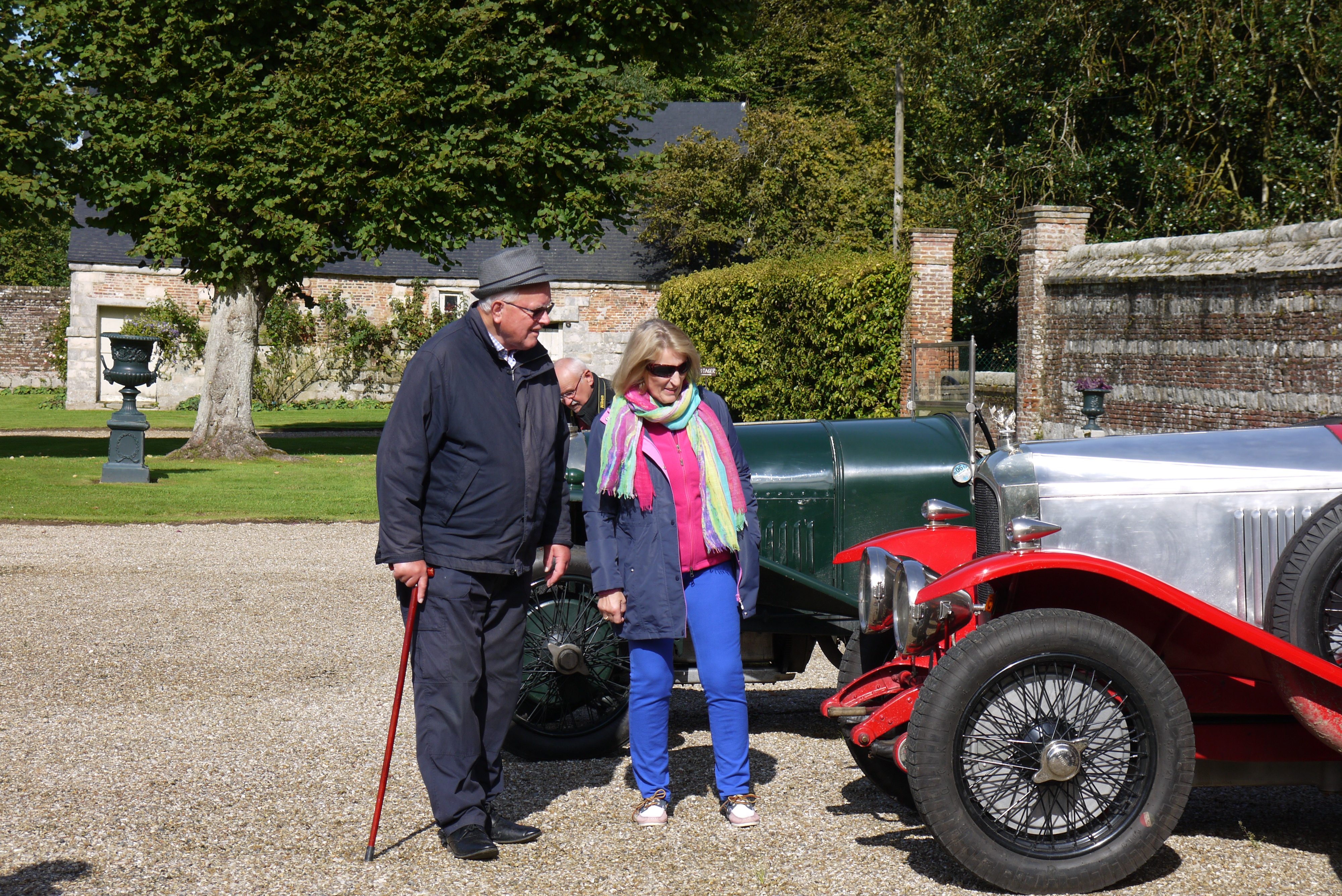 Visitors admire the vintage cars.
